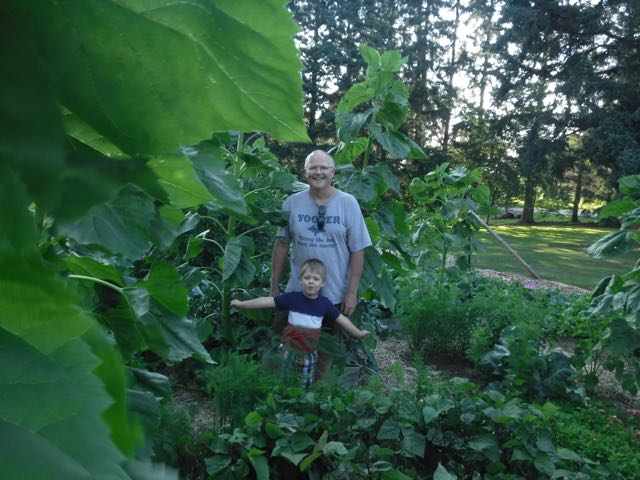With last week's rain along with warm temperatures, the garden continues to grow. Some of the sunflowers have surpassed ten feet and are still growing. My goal is for most to reach between fifteen and twenty feet.