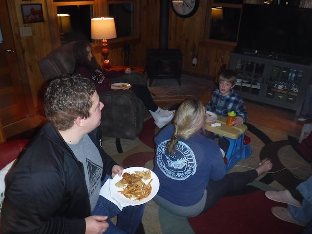 Last night, we enjoyed fried crappie filets, brats cooked outside on the grill, taters, and of course, ice cream.