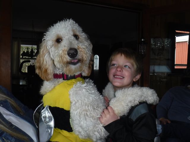 Macrea had sent a text saying they were on their way over. Hambone wanted to show Grandma Sargie and Papa his Halloween costume.