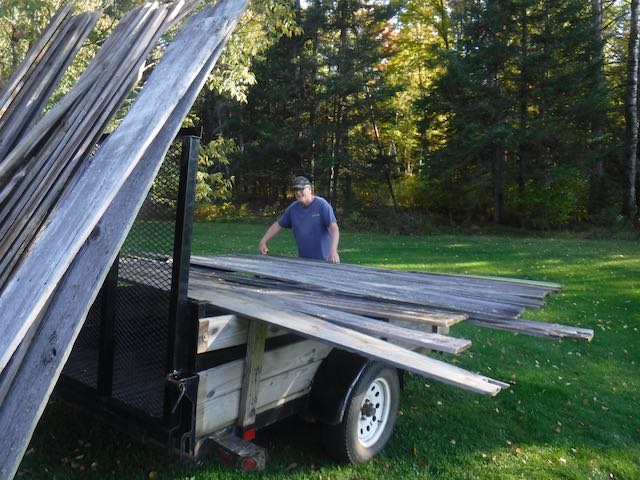 The end of the day saw Sargie and me sorting and measuring the Milligan Mountain barn wood. It appears we might have just enough to cover the interior of the garden house.